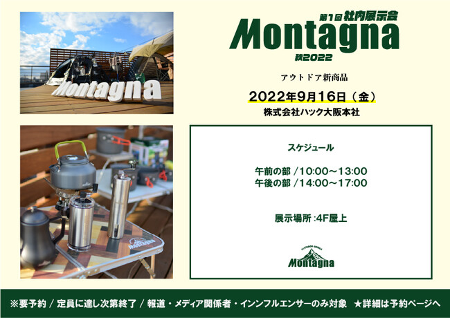 株式会社ハック(本社:大阪府東大阪市、代表取締役:有山哲也)は、2022年9月16日、株式会社ハック(大阪本社)にて報道・メディア関係者を対象に'22-23年新商品に関する社内展示会を実施致します。2022年秋冬向け雑貨・玩具など新商品などの展示・公開、2023年アウトドア用品(Montagna)の新商品などの展示・公開を行います。