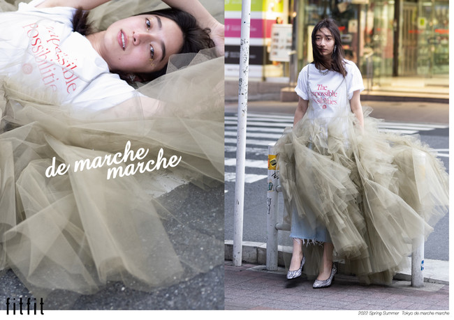 また「fitfit de marche marche」のビジュアルは、フォトグラファー花盛友里さんと、モデル高瀬真奈さんを迎え「Tokyo de marche marche」をコンセプトとしたフェミニンな世界観を表現しています。