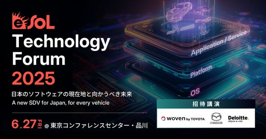 イーソル株式会社(本社:東京都中野区、代表取締役社長 CEO兼CTO:権藤 正樹、以下eSOL)は、プライベートフォーラムである「eSOL Technology Forum 2025」(以下eTF2025)を2025年6月27日(金)に開催します。その参加登録受付を本日5月19日(月)よりeSOLのWebサイトにて開始します。