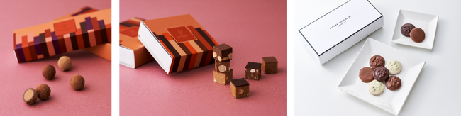 今回のコレクション商品は、チョコレートと焼き菓子ともに全て”日本初上陸"となっております。薄いチョコレートシェルの中に風味豊かでクリーミーなガナッシュを詰め、ココアパウダーでコーティングした「トリュフ オ ショコラ」、個性豊かなデザインのチョコレートと大粒のナッツやカカオニブ、滑らかなプラリネが一度に味わえる「プラリネ オ ショコラ」は、ひと粒ごとにこだわったチョコレートと厳選素材のバラエティ豊かな味わいをお楽しみいただけます。