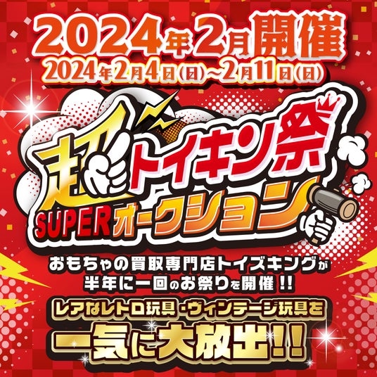 トイズキング(本社所在地:名古屋市中村区、代表者:山本 祐介)は、2024年2月4日(日)にトイズキンググループ主催の超(スーパー)オークション『トイキン祭』を開催いたします。