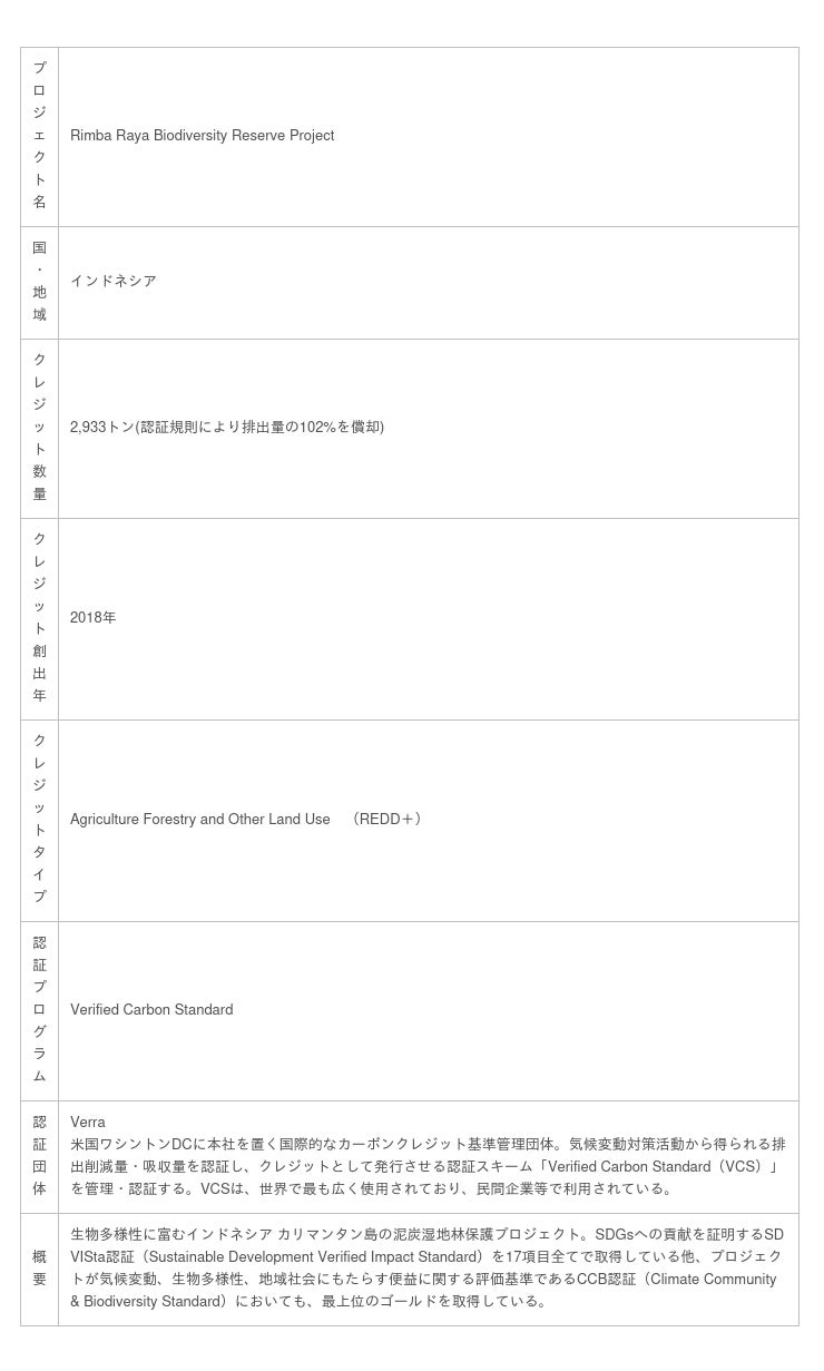 また今回使用されたクレジットは国際的なカーボンクレジット基準管理団体Verraの認証を受け、過去5年以内に創出されたものです。加えて、このプロジェクトはCO2の排出削減に寄与するだけでなく、生物多様性の保全や地域住民の雇用創出といった相乗便益に貢献しています。