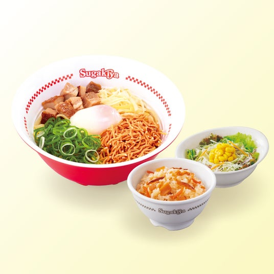 ベビースターまぜそばとスガキヤの人気メニューが一緒になった特別セットも期間限定で登場。