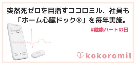 株式会社ココロミル(本社:東京都新宿区、代表取締役社長:林大貴)は、ウェアラブル心電計を用いた長時間心電図計測サービス「ホーム心臓ドック(R)」を全社員に年に1回実施する制度を導入し、社員の健康管理に取り組んでいます。ココロミルは、心臓起因の突然死をゼロにすることを目指し、隠れた心疾患の早期発見と予防を推進しています。