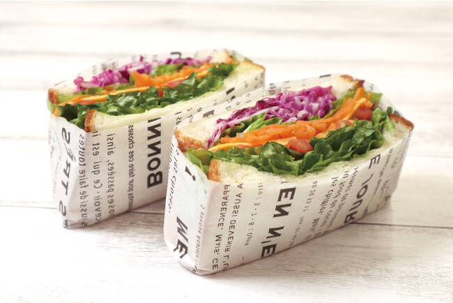 ベジタリアンさんにおすすめ!野菜をこれでもかと、たっぷり詰め込んだボリュームサンド。キャベツやトマト、キャロットサラダ等6種類の野菜をギュッと挟み込みました。食パンに塗ったペンギン特製バターマヨネーズとの相性もバッチリ♪