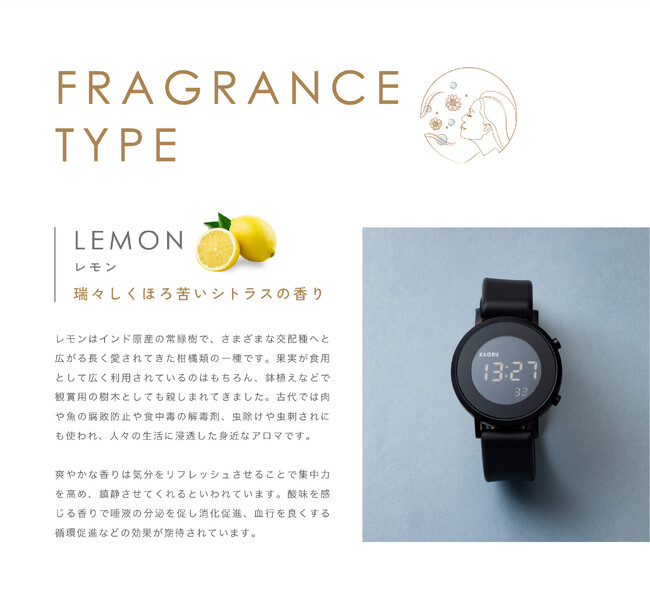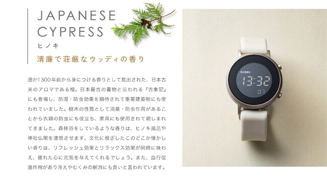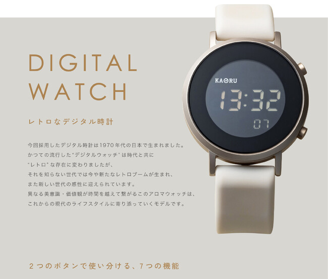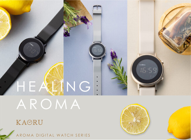 新しい時計スタイルの楽しみ方を提案している株式会社マルゼキから、大人気の香りがする腕時計ブランド「KAORU」より、新たに「アロマデジタル」シリーズが登場!