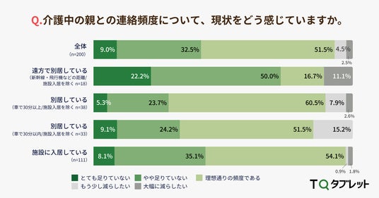 TQコネクト株式会社(本社:東京都渋谷区、代表取締役社長:五木 公明)は、現在介護を必要とする別居中の親がいる60~70代の方を対象に、「介護世帯のコミュニケーションに関する調査」を実施し、200名から回答を得ました。