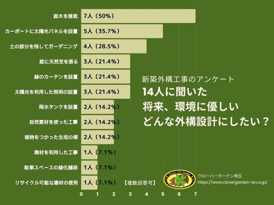 外構工事を専門としている有限会社クローバーガーデン(本社:埼玉県)は、一戸建て住宅に住んでいる人を対象にアンケート調査を実施。今回は「環境に配慮した外構設計」だけに焦点を当てたレポートです。