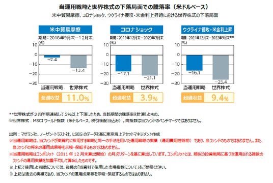 世界経済は、主要国の金融政策転換による政策の不透明感やインフレ再燃懸念等により、先行きが見通しづらい状況にあります。こうした市場環境においては、規制や契約に守られ、景気やインフレの動向に関わらず安定成長し続けるモノポリー企業への投資の必要性が高まると考えています。過去において、投資家のリスク回避姿勢が強まる局面で、当ファンドは強い下値抵抗力を発揮してきました。