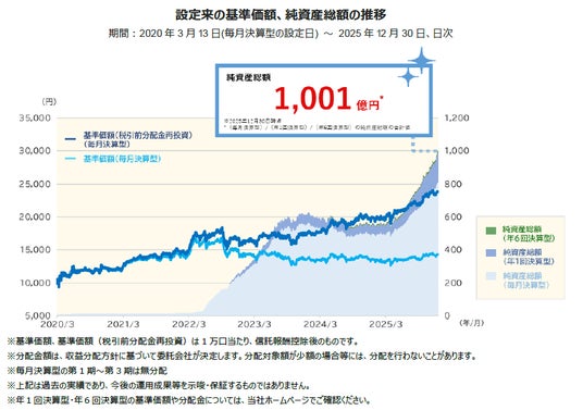 東京海上アセットマネジメント株式会社(代表取締役社長 兼CEO 長澤 和哉、以下「当社」)は、2025年12月30日に追加型投資信託「東京海上・世界モノポリー戦略株式ファンド(毎月決算型)/(年1回決算型)/(年6回決算型)」の純資産総額が1,000*億円を突破したことをお知らせします。日頃より当ファンドをご愛顧いただき感謝申し上げます。