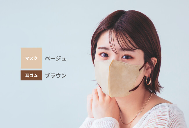 社内の女性スタッフがアンケートやマーケティング調査などを経て考え抜き、肌の色が明るく見えるニュアンスカラー3色を不織布に、濃いめのカラーで引き締まった印象を与える4色を耳ゴムに選びました。厳選の5パターンの組み合わせを準備しています。