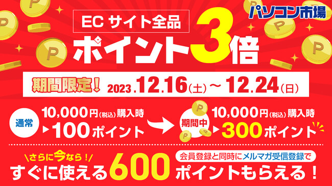 パソコン市場ECサイトにてご購入の際、お買い物ポイントを通常の3倍発行いたします。