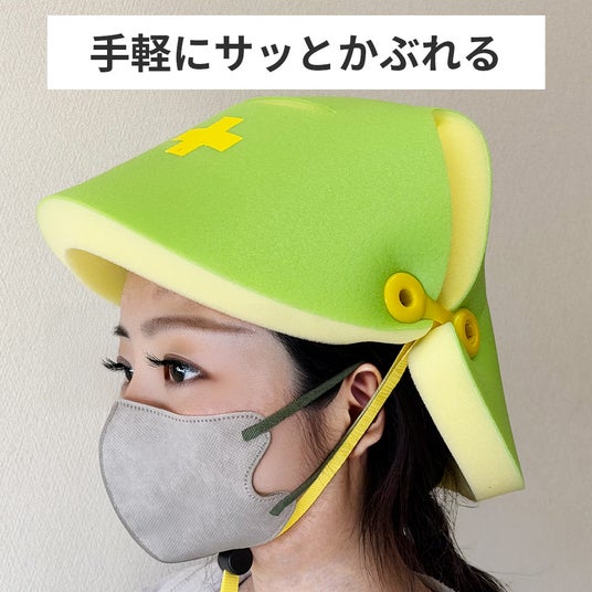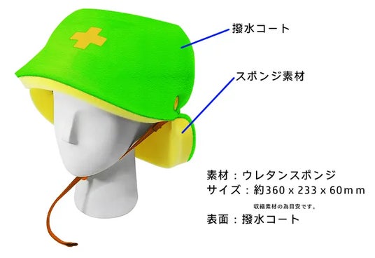 「軽量コンパクト。いざという時には頭を守る!ウレタン素材のしまえる頭部保護頭巾」