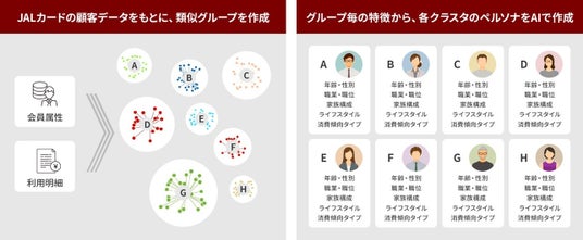 (注2)ペルソナ:JALカード会員情報(属性・利用明細データ)を基に購買店舗・サービス・種別でクラスタリングを行い、クラスタごとに作成したデータ