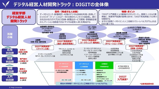 明治大学経営学部は、「デジタル経営人材」の育成を目的に、学部独自のプログラム「デジタル経営人材開発トラック:DIGIT(Digital Insights for Growth and Innovation Track)」を2024年4月から開始します。