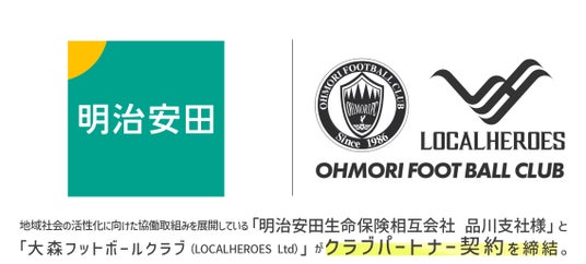 大森フットボールクラブ/LOCALHEROES Ltd(東京都大田区 代表 小島直人、以下 大森FC)はこの度、明治安田生命保険相互会社・品川支社様とクラブパートナー契約を締結いたしましたので、お知らせいたします。Jリーグタイトルパートナーである明治安田生命保険相互会社様とともに、サッカーを通じて地域や人をつなぎ、地域の元気につながる活動をご一緒できることを大変嬉しく思います。