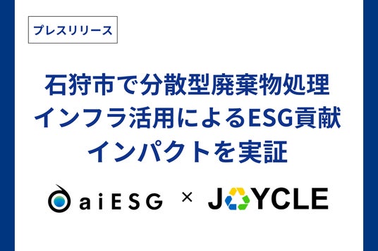 製品およびサービスレベルのサプライチェーン ESG 分析評価コンサルティング・クラウドサービスを開発・提供する株式会社aiESG (アイエスジー、本社:福岡市博多区、代表取締役:馬奈木 俊介/以下、aiESG)は、株式会社JOYCLE(本社:東京都港区、代表取締役:小柳裕太郎、以下「JOYCLE」)と、北海道石狩市をフィールドに、分散型インフラESG貢献インパクトの解析・算出を目的とした実証実験を実施いたしました。