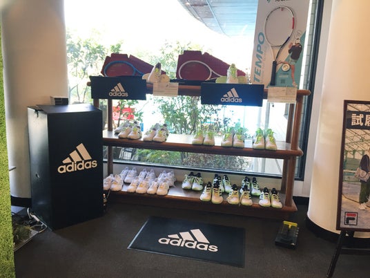 アディダスのシューズコンサルティングブースでは、全豪オープンモデルの「Barricade 13」シリーズをはじめ、「Adizero Ubersonic 4.1」「CourtJam Control 3」の試履きや、テニスアパレルの展示販売が行われました。