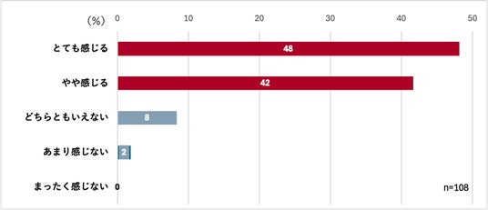 総合診療医の48%が「とても感じる」、42%が「やや感じる」と、合わせて全体の90%が「感じる」と回答しました。