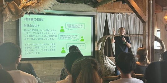 Uber Eats Japan合同会社(以下、Uber Eats Japan)は、Uber Eatsのサービスについて配達パートナーと意見交換する「配達パートナー対話会」を、2024年9月19日(木)および9月20日(金)に大阪で初めて開催しました。本対話会では、全国の配達パートナーを対象に行った事前アンケートで最もご要望が多かった 「アプリケーションの仕様について」「注文者について」「報酬について」の 3 つのトピックに関して、大阪市内で稼働中の37名の配達パートナーの皆さまからUber Eats社員がご意見をお伺いしました。