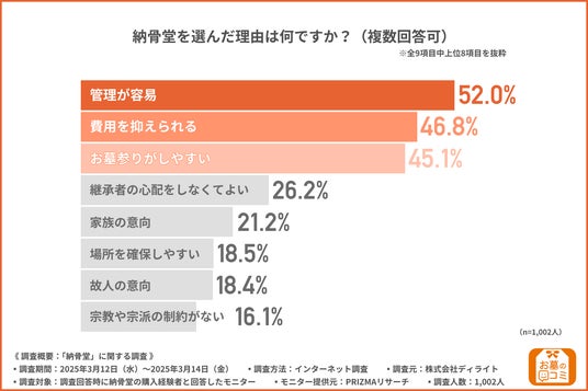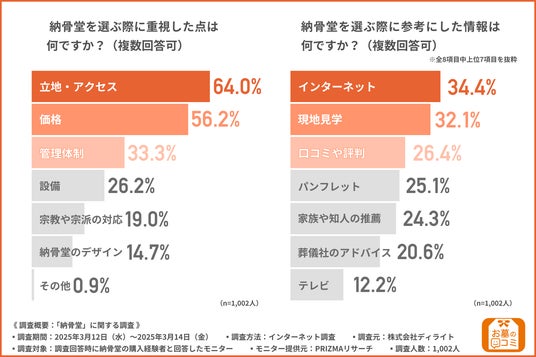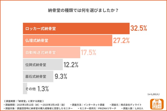 株式会社ディライト(本社所在地:東京都新宿区、代表取締役:高橋 亮)は、納骨堂の購入経験者を対象に、「納骨堂」に関する調査を行いました。