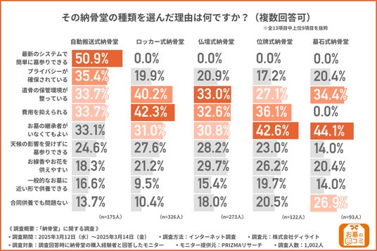 「その納骨堂の種類を選んだ理由は何ですか?(複数回答可)」と質問したところ、以下のような回答結果になりました。
