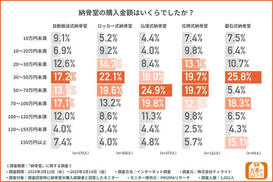 続いて、「納骨堂の購入金額はいくらでしたか?」と質問したところ、以下のような回答結果になりました。