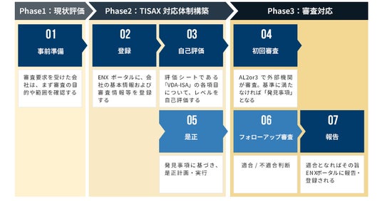 まず、TISAXの要求事項に基づく現状評価を実施し、可視化されたギャップに対して、人的、組織的、技術的観点から必要な対策を洗い出します。これらの対策を優先度に基づいて整理し、リソースやコストを考慮した現実的な改善計画としてロードマップに落とし込みます。