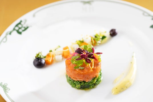 特に、新たなシグネチャーコース「けやき」は、料理長がこだわった伝統と進化の融合をご堪能いただける全6皿です。信州サーモンの冷前菜は、継承したレシピで丁寧に作るベアルネーズソースに、ブルーベリー、ハーブの香りがアクセント。香ばしい鱗の甘鯛に伝統の白ワインソースを合わせ、色鮮やかに仕上げた魚料理のほか、メインの牛フィレ肉の一皿は、華やかな香りのピノノワールで作る秘伝の赤ワインソースと、安曇野山葵の2種で味わいの違いを楽しむなど、信州ならではの食材の数々に、料理長のこだわりが光るメニューが並びます。これまで万平ホテルの伝統の味をご贔屓いただいていた方々にはもちろん、初めて当ホテルを訪れるお客様にもきっと愛していただけるコースです。