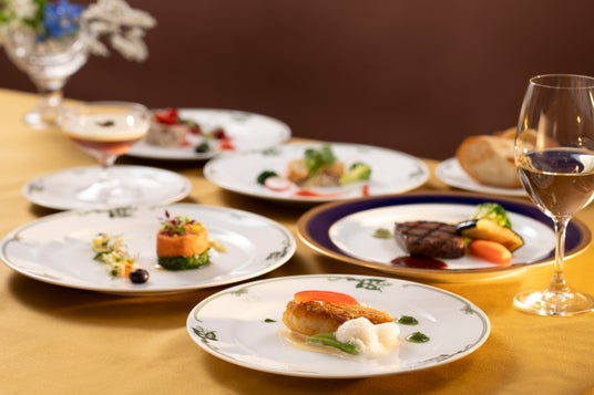 ディナーでは新たなシグネチャーコース「けやき」のほか、地産地消にこだわったもう1種のコースや、アラカルトをご用意。新たに進化した当ホテル伝統の味をお楽しみいただけます。