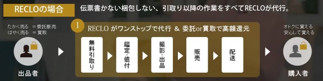 RECLOとは高級ブランド品を対象とし、ブランド品を売りたい人と買いたい人それぞれのクローゼットを“シェア”しあうリセールプラットフォームです。ユーザーは不要になったブランド品をRECLOに預けるだけ。あとはRECLOが、専属の鑑定士による商品の査定・値付けから出品、取引成立後の入金確認、配送まで全て面倒な作業を行います。加えて、全品正規品保証をお約束する安心・安全な委託&買取サービスを展開することで上質なリセール体験を提供しています。さらに、アジア、欧米、その他さまざまな地域において約200ヶ国で同時併売できるシステムを保有しているため、リセール品を適切な価格でグローバルに販売可能です。