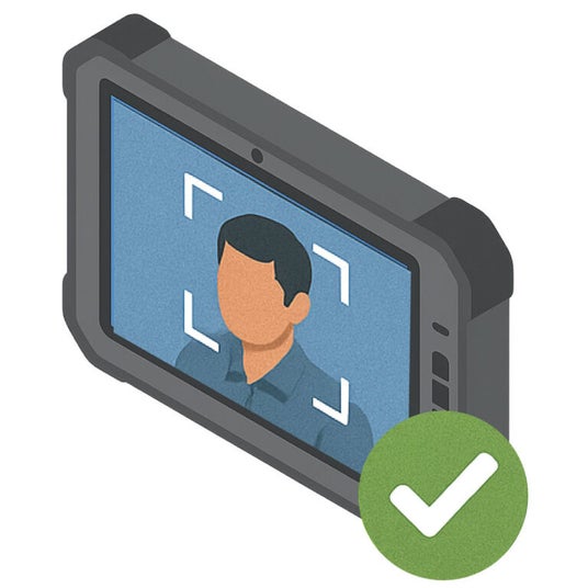 独自開発の安定化電源ユニットを内蔵した専用マウントフレーム(FRAME-05Fork-A)により振動・衝撃や電源トラブルから端末を保護し、過酷な現場環境でも安心して運用できます。無線LANやBluetoothにも対応し、取得データをリアルタイムでサーバー送信する通信機能も備えています。車両への後付けも容易なコンパクト設計で、既存フォークリフトへの導入もスムーズに行えます。