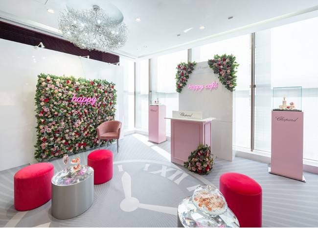 ショパール ブティック 銀座本店では、2022年5月8日(日)まで、ハッピーダイヤモンドキャンペーンの世界観を表現した“HAPPY POP UP”を開催中です。ハピネスに包まれたブティック3Fのサロンでは、日本初となる“HAPPY CAFÉ”をオープンし、訪れる皆さまにメゾンのエスプリ溢れる空間とスペシャルスイーツを提供いたします。キャンペーンカラーを纏った鮮やかなピンクのオリジナルスイーツ&カクテル(ノンアルコール)や、ラテアートを施したカフェラテなどがお楽しみいただけます。