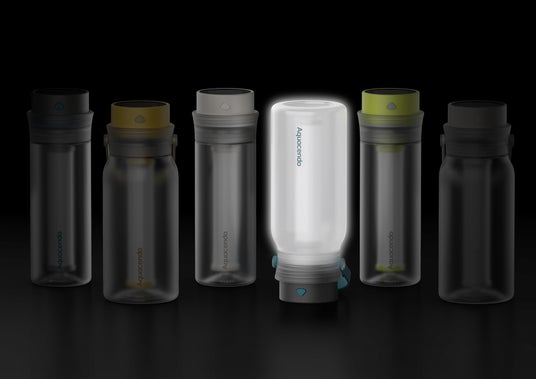 プロダクトデザインで「ベスト・オブ・イヤー」に選出された「點亮濾水瓶 Aquacendo LightUpFiltered Bottle」。易集國際開發有限公司(台湾)