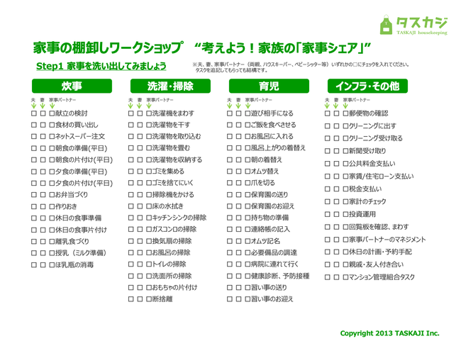 そこで、家事の棚卸しワークショップのタスカジ流「家事シェア」術を提案します。