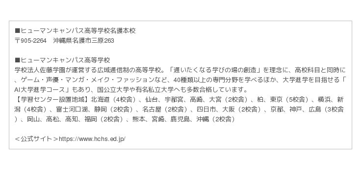 ヒューマンキャンパス高等学校は、2014年4月20日に沖縄県名護市に本校を開校し、今年で5周年を迎えました。