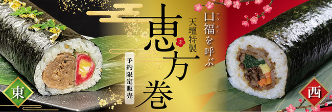 1965年の創業以来「お出汁で食べる京都焼肉」を提供する『焼肉の名門 天壇』(運営:株式会社晃商、代表取締役社長 新井義淳)は、2月2日(水)・3日(木)の2日間、『関西版 口福を呼ぶ 天壇特製 恵方巻』と『関東版 口福を呼ぶ 天壇特製 恵方巻』の2種類を各地域限定にて販売します。それに伴い、天壇グループ全店舗で1月11日(火)より予約受付を開始します。