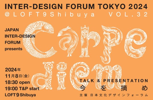 アート、デザイン、建築、科学、文学、食、音楽など多彩な分野の専門家がジャンルの垣根を超えて活動している一般社団法人日本文化デザインフォーラム(理事長:水野誠一、以下JIDF)は、様々な分野の著名人によるトークイベント『Carpe diem=今を摘め』VOL.32~対談シリーズ・5~を、2024年11月8日(金)にLOFT9 Shibuya(東京都渋谷区)で開催します。https://carpediem32.peatix.com/