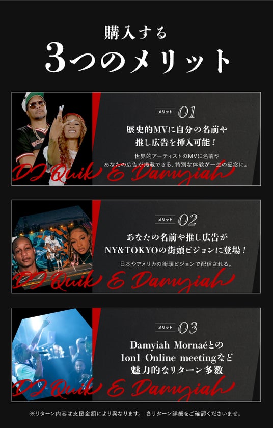 - 企画名:推しMV広告プロジェクト feat. DJ Quik × Damyiah Mornae