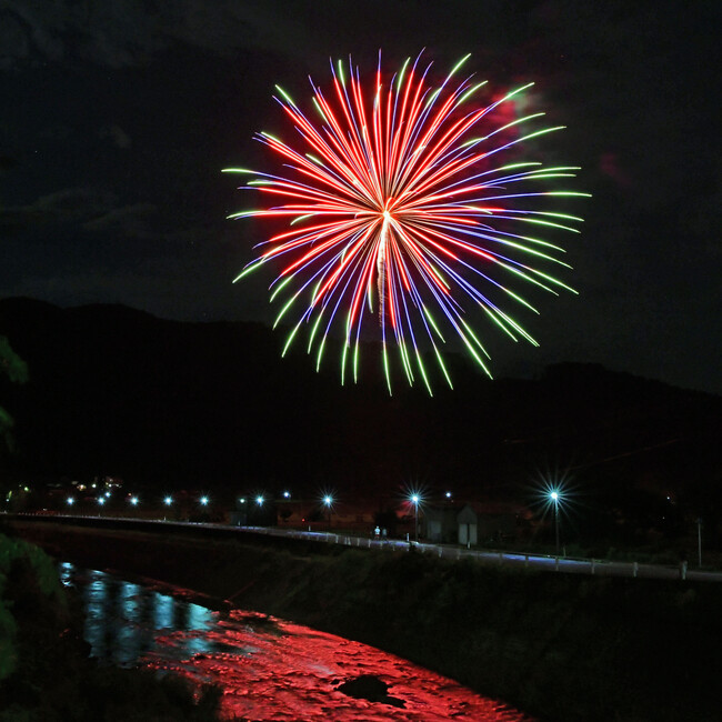 ※池田中学校グラウンド(福井県今立郡池田町稲荷20-14)に無料駐車場あり