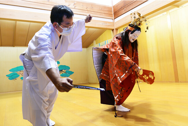 第20回能面公募展・写し面の部で最優秀賞作品に選ばれた田中徳平さん(福岡県)作の能面「増女(ぞうおんな)」と審査員特別賞作品に選ばれた臼田祐翠さん(岐阜県)作の能面「小癋見(こべしみ)」が使用されます。