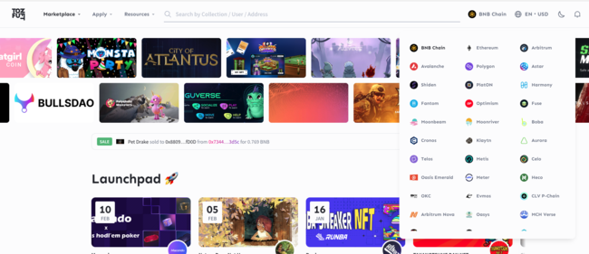 2021年10月にBSCでスタートし、12月から同チェーン上で最大規模のNFTマーケットプレイスに成長。また、Arbitrum、Metis、Boba、Aurora、Moonbeam、Astarでもすでに最大のNFTマーケットプレイスとなっており、Avalanche、Polygon、Fantom、Cronos、Optimism、その他のチェーンではトップ3以内の取引量を持ちます。2022年9月に世界で最も出来高を持つNFTマーケットプレイスであるX2Y2との提携を発表しました。