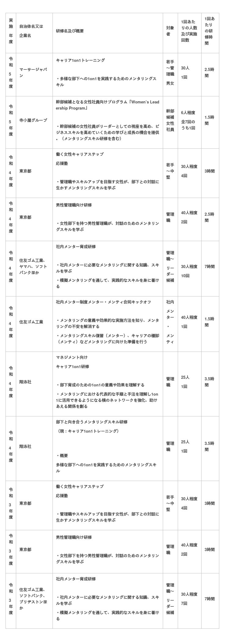 (※1)Mentor For によるメンター研修実績