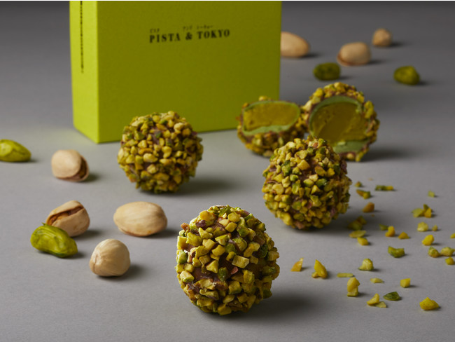 ローストピスタチオで飾ったインパクトのある見た目の中にはなめらかなくちどけのピスタチオガナッシュをギュッと閉じ込めました。ピスタチオづくしのコクのある味わいをトリュフ仕立てにした限定のチョコレートです。