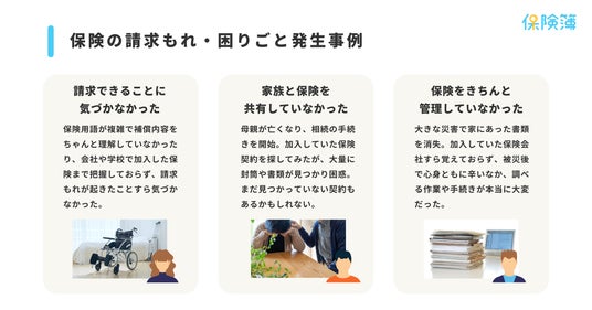 当社が提供する「保険簿」は、保険金請求に関する課題解決に向けて、加入者の保険管理を支えるアプリです。