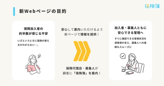現在も「保険簿」の案内を推進いただいている保険事業者がいる中で、さらにこの取り組みを強化し支援するため、この度新しくWebページを公開いたしました。