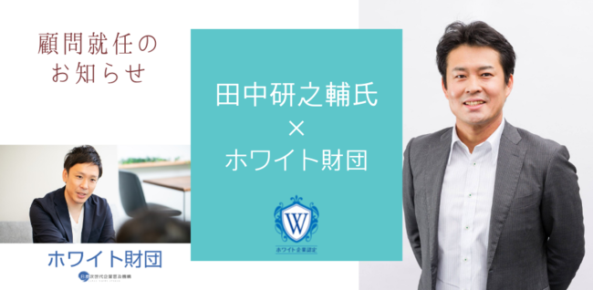 そこでキャリアの専門家である田中研之輔氏を顧問に顧問として就任いただくことで、社会に向けて働き方に関する意識の変容を促すとともに、ホワイト財団の運営や組織構築を支援していただきたいと思っています。
