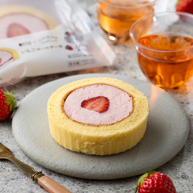 こだわりの濃厚いちごクリームの間に甘酸っぱいいちごソースをサンドして、くちどけの良いスポンジ生地で巻いたいちごづくしのロールケーキです。天面にはうれしいハーフいちごがトッピングされています。
