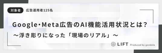 株式会社ゴンドラ(東京都千代田区、代表取締役社長 古江恵治)は、「Google・Meta広告のAI機能活用と成果に関するアンケート調査を実施し、調査結果を当社マーケティングメディア「LIFT」にて公開しましたので、お知らせいたします。