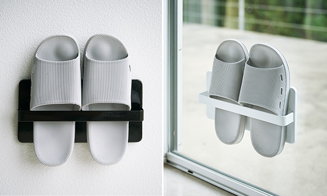 雨や風を避けてベランダスリッパを室内の窓や扉に吸盤で取り付けて簡単収納!